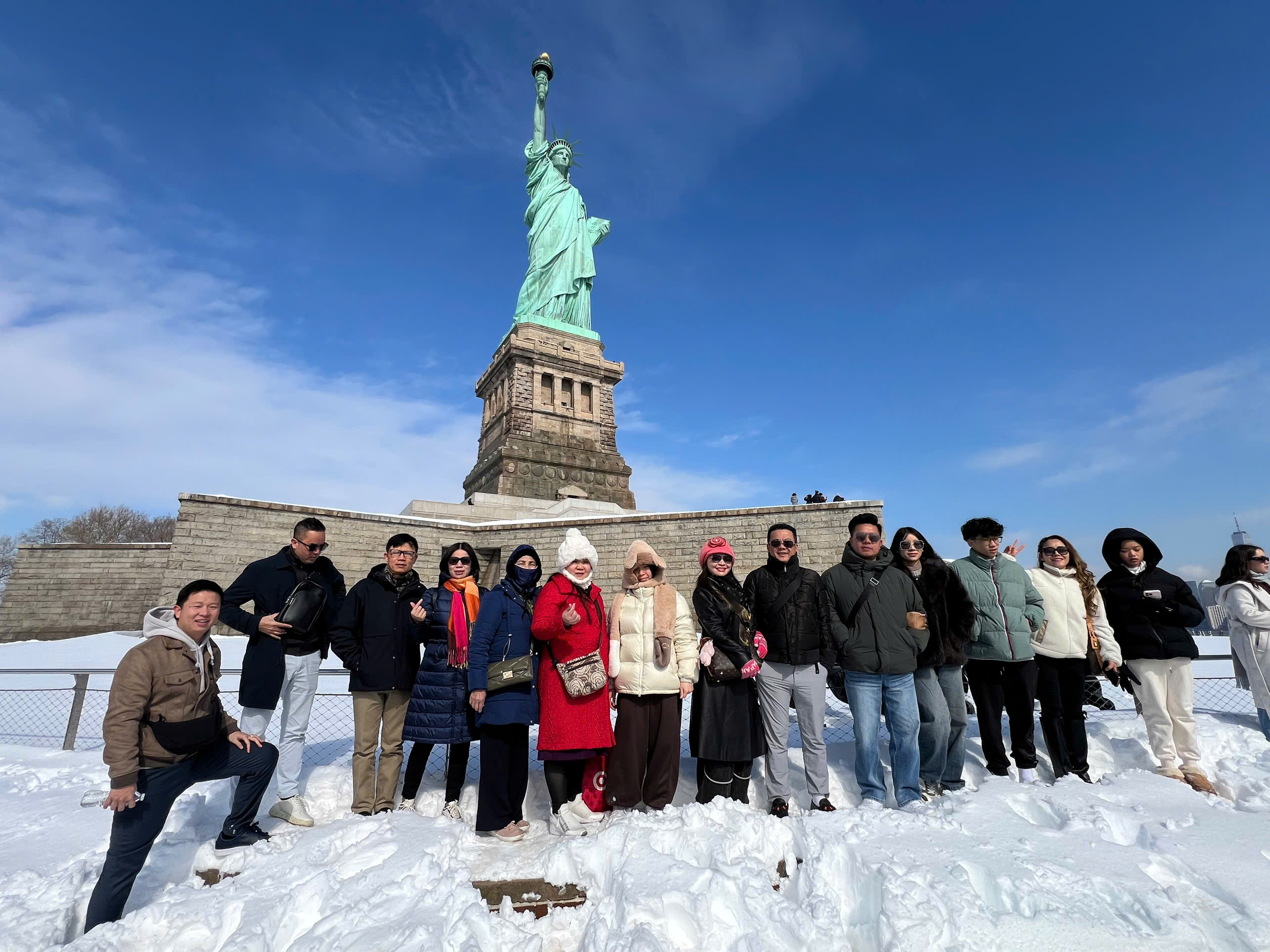 Giữa tiết trời trong xanh, đoàn khách của World Sun Travel đã có những khoảnh khắc thật đặc biệt khi đặt chân đến New York. Với những bông tuyết khẽ rơi, phủ trắng xóa muôn nơi.